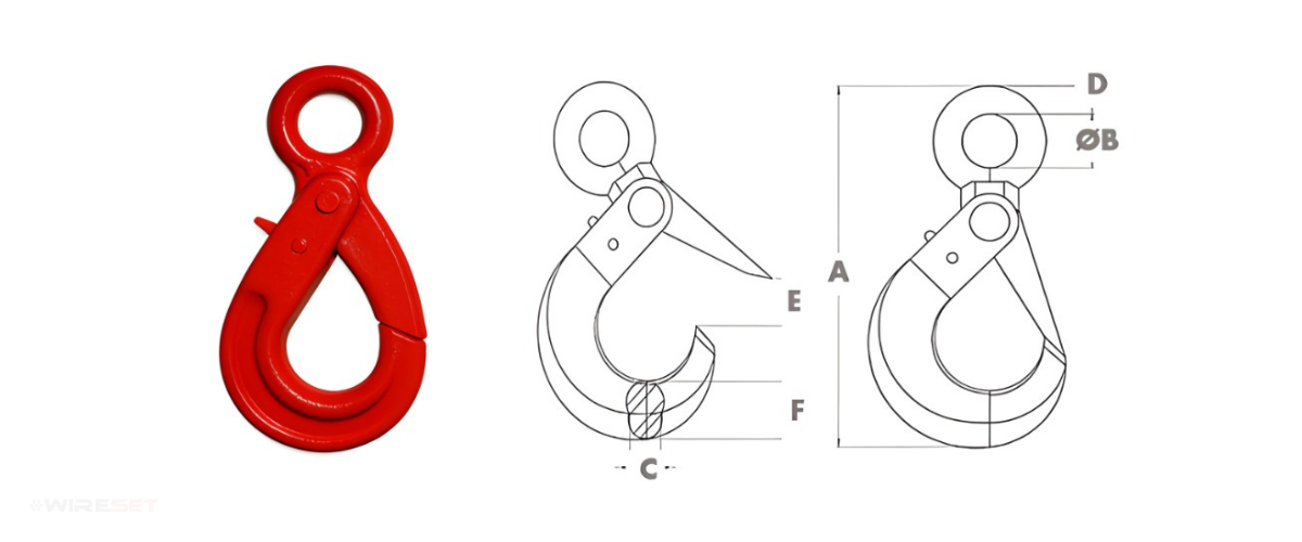 Produzido em aço liga (Alloy Steel) grau 8, o Gancho Olhal Automático é indicado para içamentos e elevações de cargas, contando com trava de segurança autoblocante integrada, capacidade de trabalho gravada em relevo.