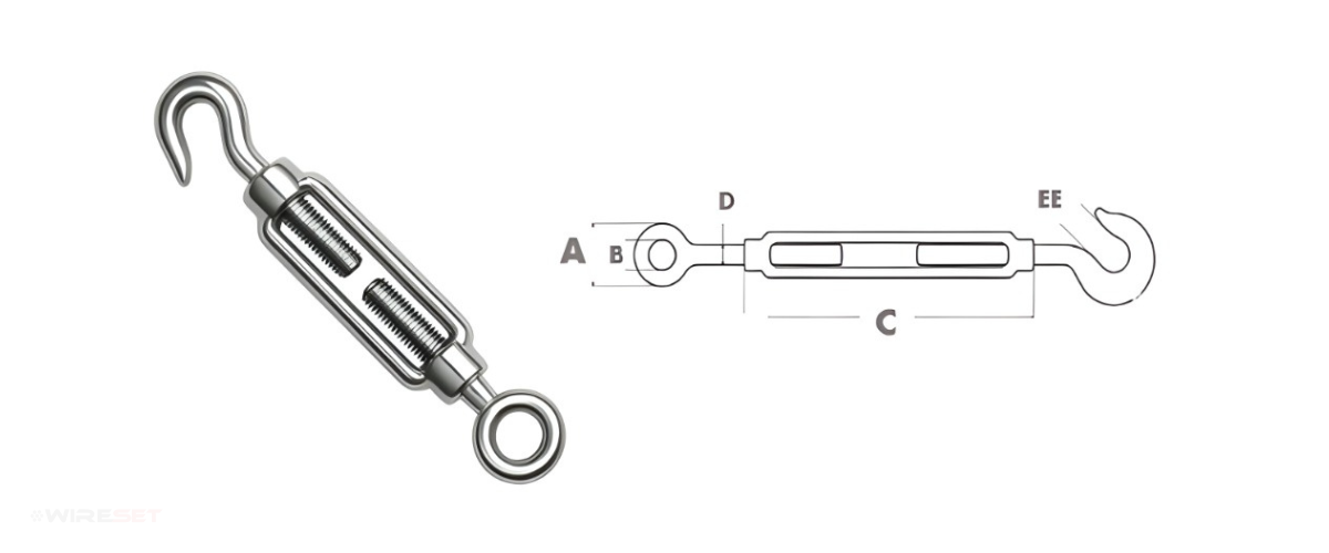 O Esticador Inox Olhal x Olhal empregado para tensionar cabos de aço e cordoalhas em operações de içamento, amarração, movimentação e fixação de cargas, eliminando folgas trazendo maior tensão e estabilidade no procedimentos de elevação e manuseio de materiais.