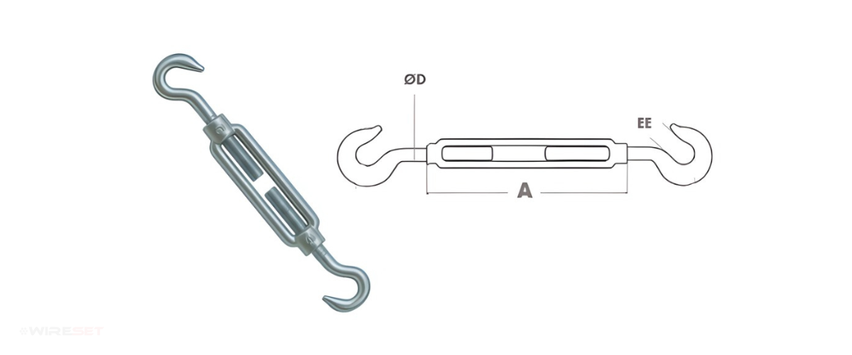 Aplicado em cabos de aço e cordoalhas, o Esticador Forjado Gancho x Gancho é indicado para operações de movimentação e elevação de cargas.