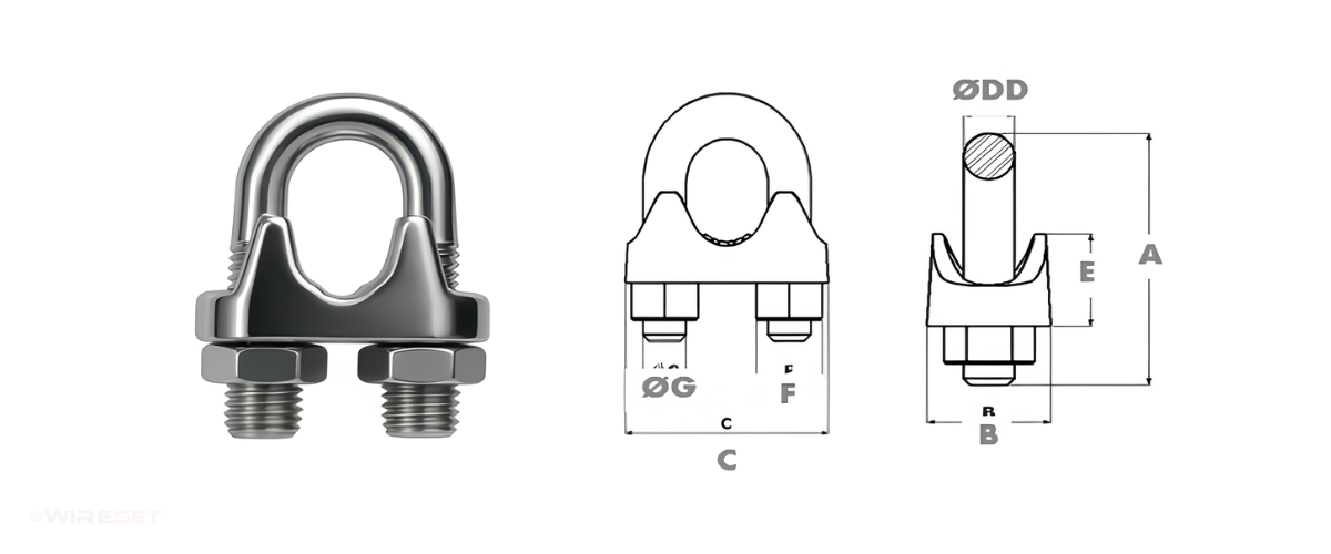 Grampo leve e pesado em inox é amplamente empregado na formação de laços e na amarração segura de cabos de aço e cordoalhas em operações de movimentação de cargas.