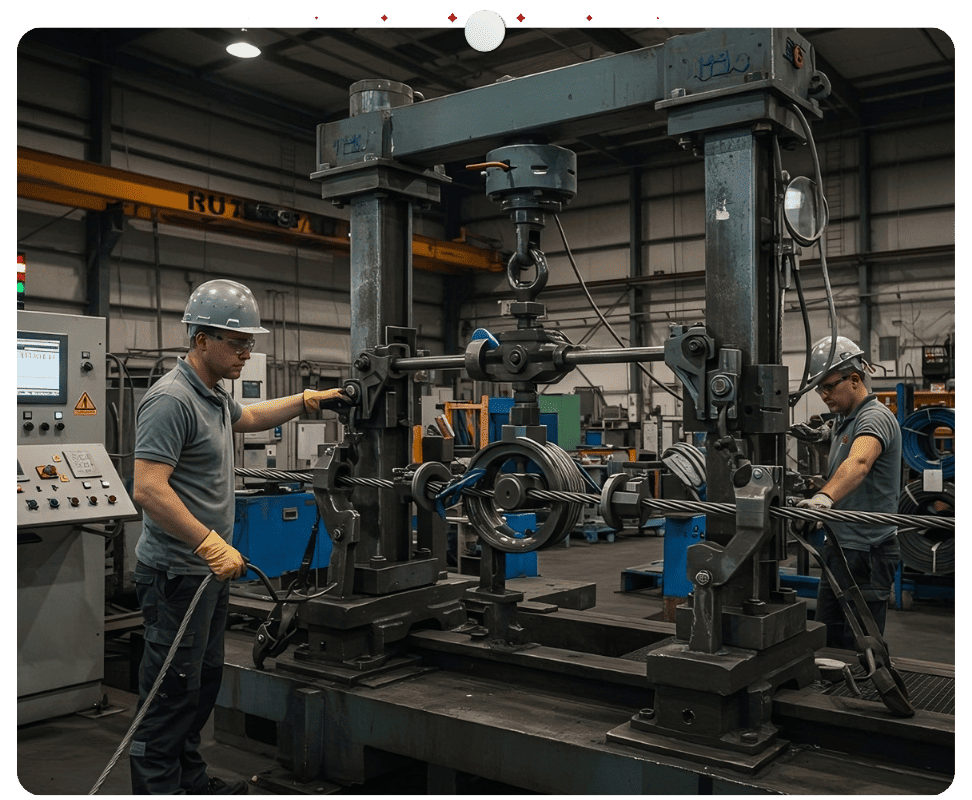 Teste de Tração em Laços de Cabo de Aço: