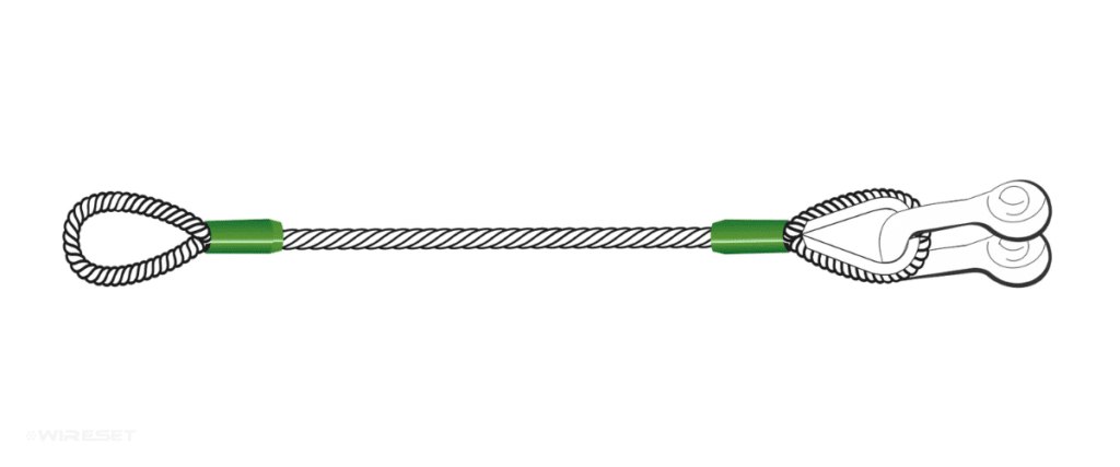 Laço com soquete aberto em uma das extremidades e soquete fechado em outra, destinados a movimentação de variados tipos de carga ou para fixação de cabos.