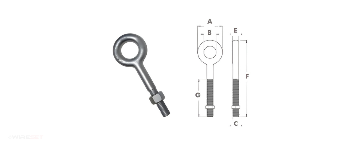 Olhal de Suspensão com Rosca Longa e Furo Passante, projetado para ancoragem e movimentação de cargas em instalações que exigem maior comprimento de rosca.